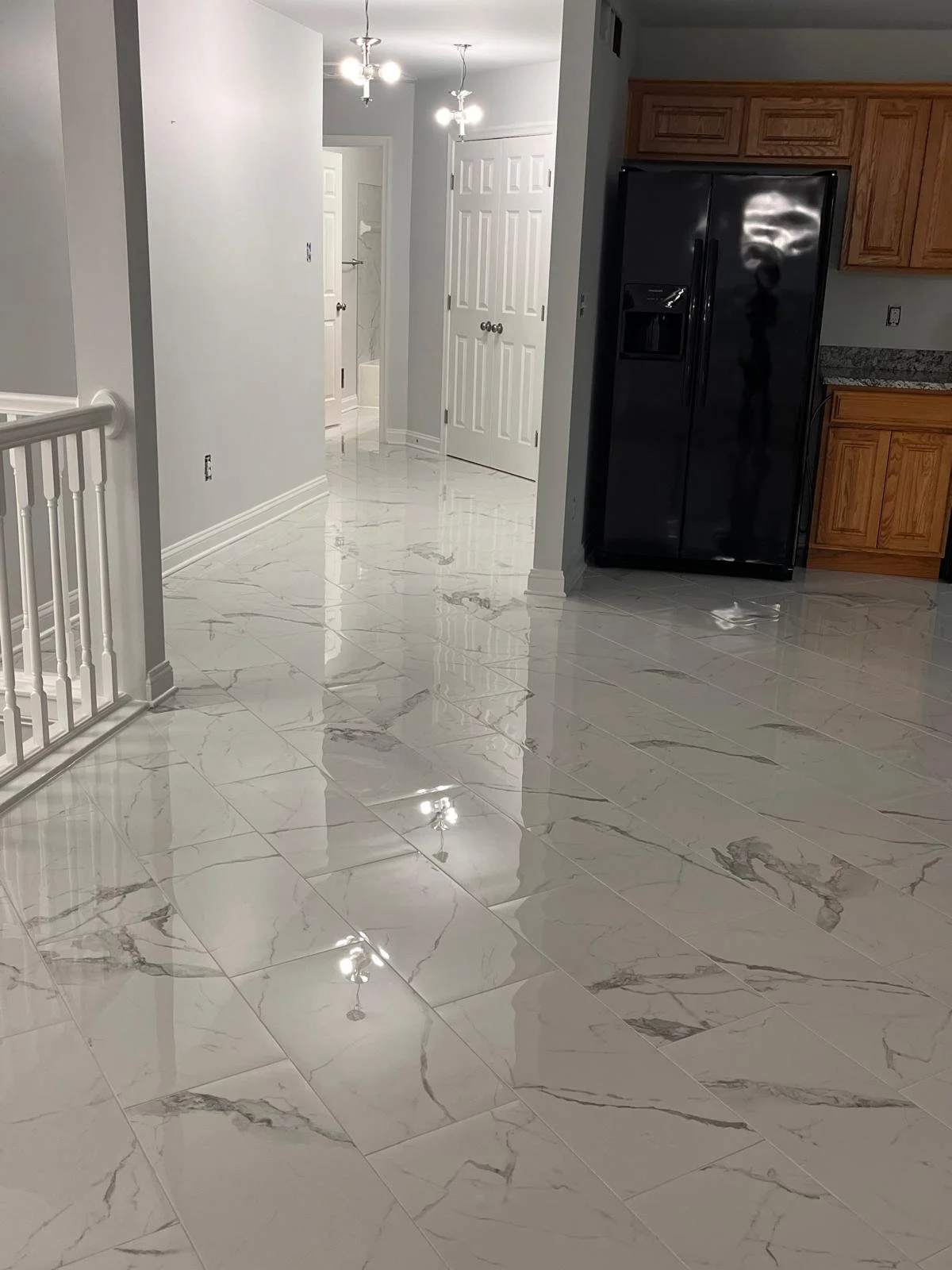 Water-resistant and durable floors, ideal for kitchens, bathrooms, and high-traffic areas.